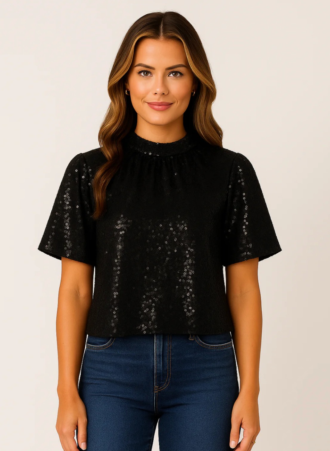 KATE & PIPPA AVA SEQUIN TOP IN BLACK