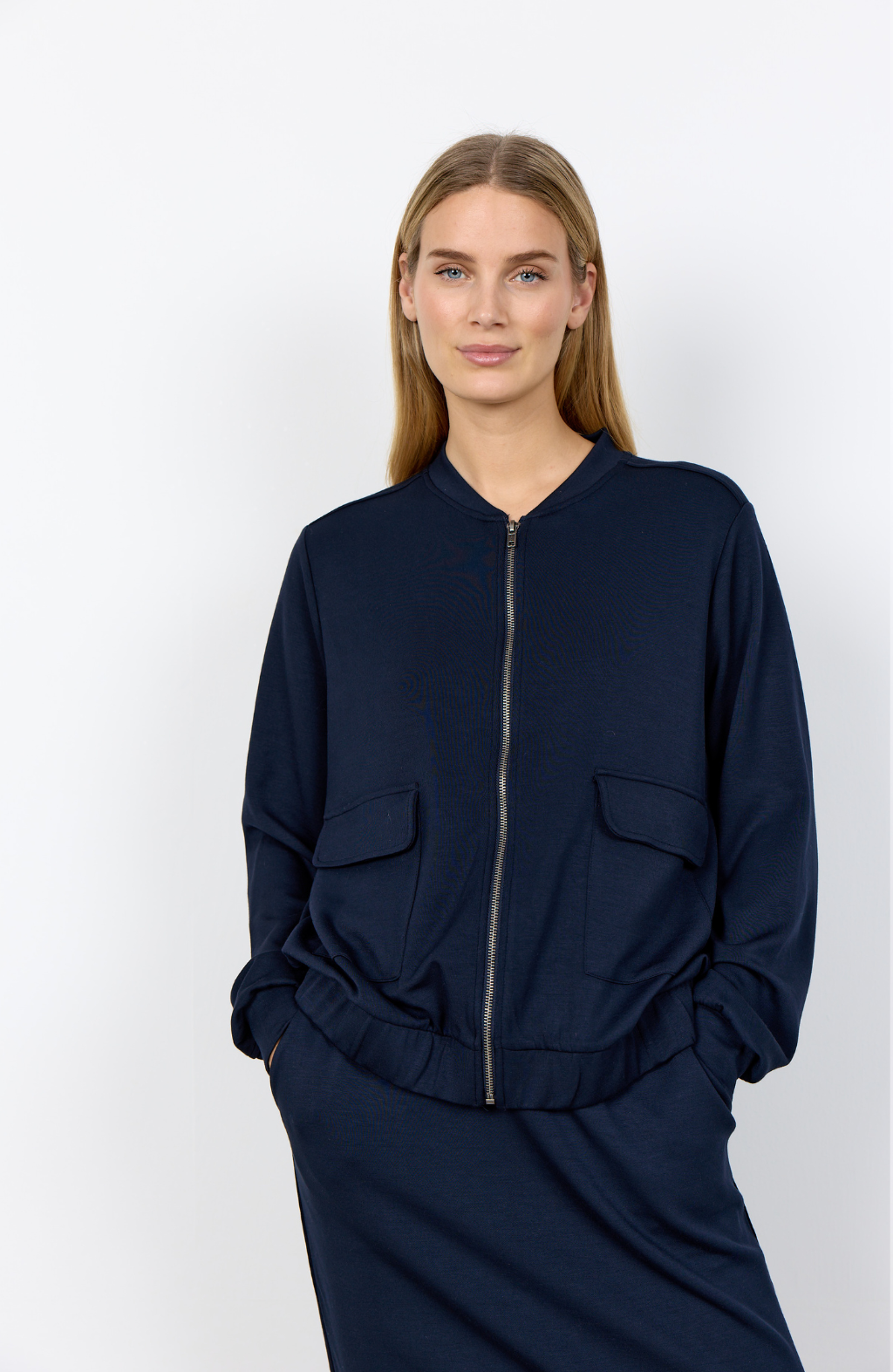 SC-BANU 293 is a Cardigan crafted from 48% Modal, 48% Polyester, 4% Elastane. This cardigan includes a sleek zip closure, ribbed cuffs, and practical front pockets for utility and style. Pair it with tailored trousers and sneakers for a cool, relaxed look.